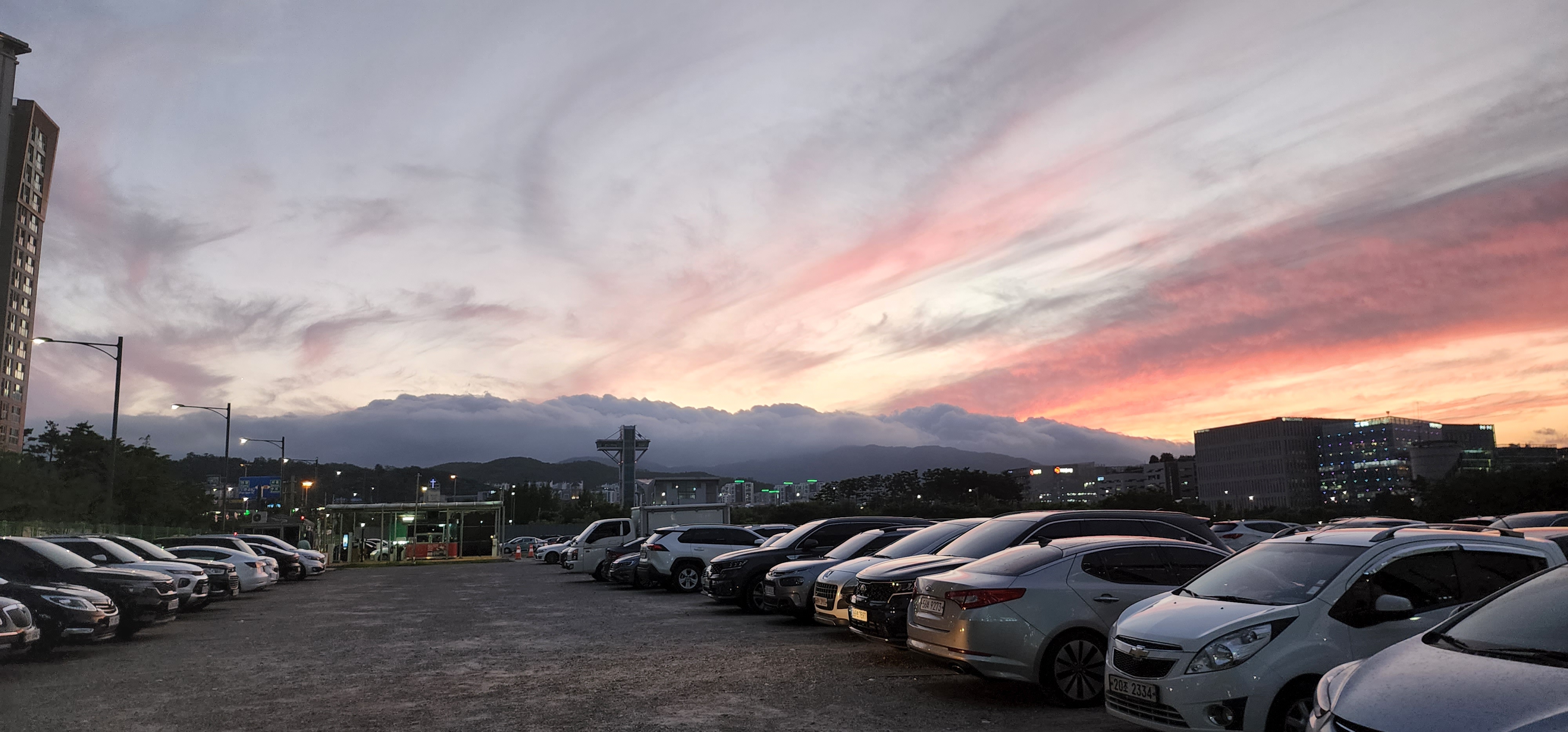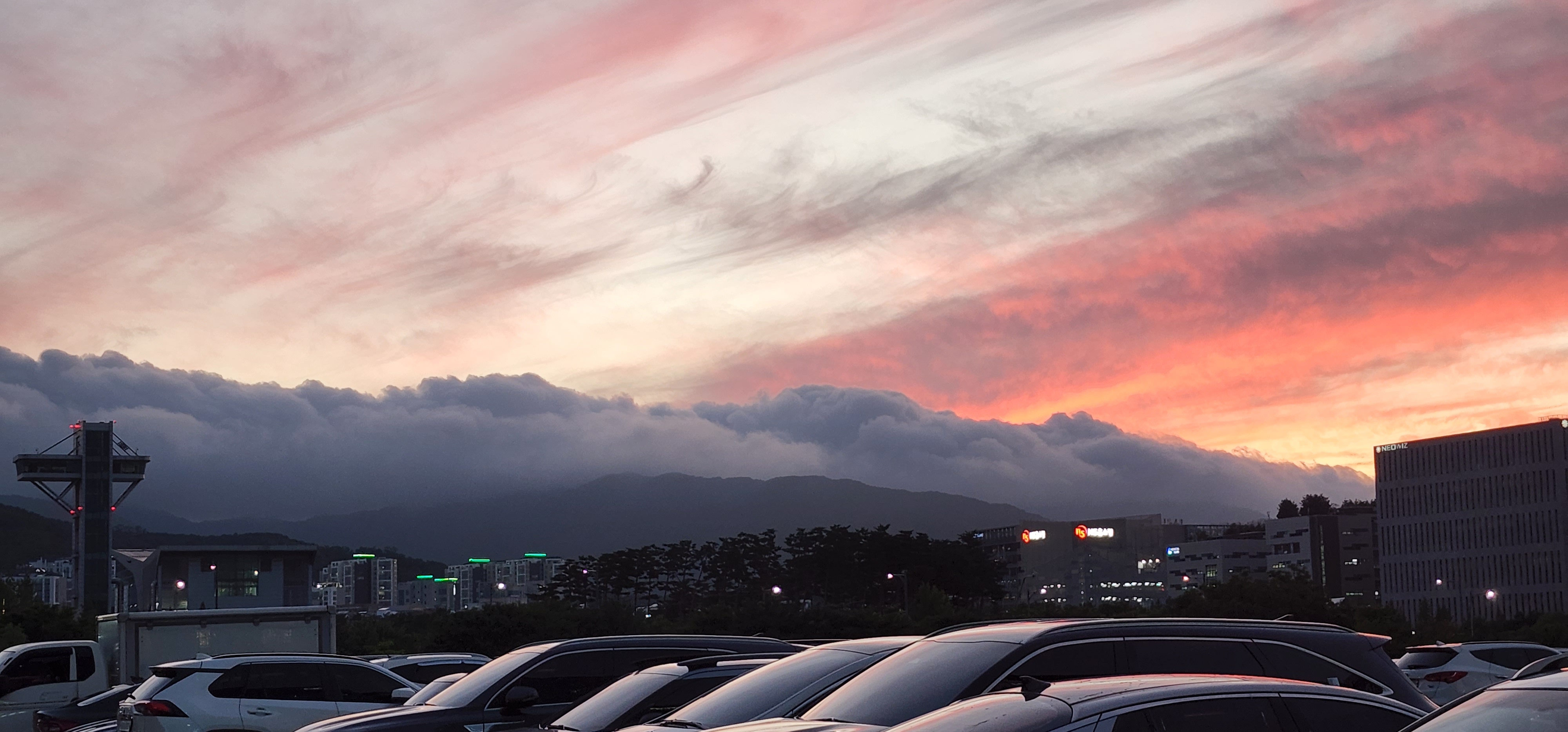 그런 와중에 주차장에 왔는데 같이 있던 신프로가 구름이 멋있다고 하여 저 멀리보니 정말 보기드믄 장관이 펼쳐지고 있었습니다. 그런데 이ㅏ 풍경에 감격하기 보다 왜 이리 우울한 내 마음을 담고 있다는 생각이 드는지 카메라의 각도와 WB, 노출 등을 조정하면서 카메라에 담았습니다.