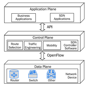 다시말해 각 네트워크장치에서 수행하던 제어기능을 모두 서버컴퓨터의 소프트웨어로 구현하여 하드웨어로부터 제어기능을 분리(decoupling)한 것으로 이해할 수 있습니다 (이렇게 분리되어 제어기능을 담당하는 통합제어부를 SDN controller라고 함). 분리된 네트워크장비와 제어부는 표준화된 프로토콜인 OpenFlow에 따라 연동됩니다.