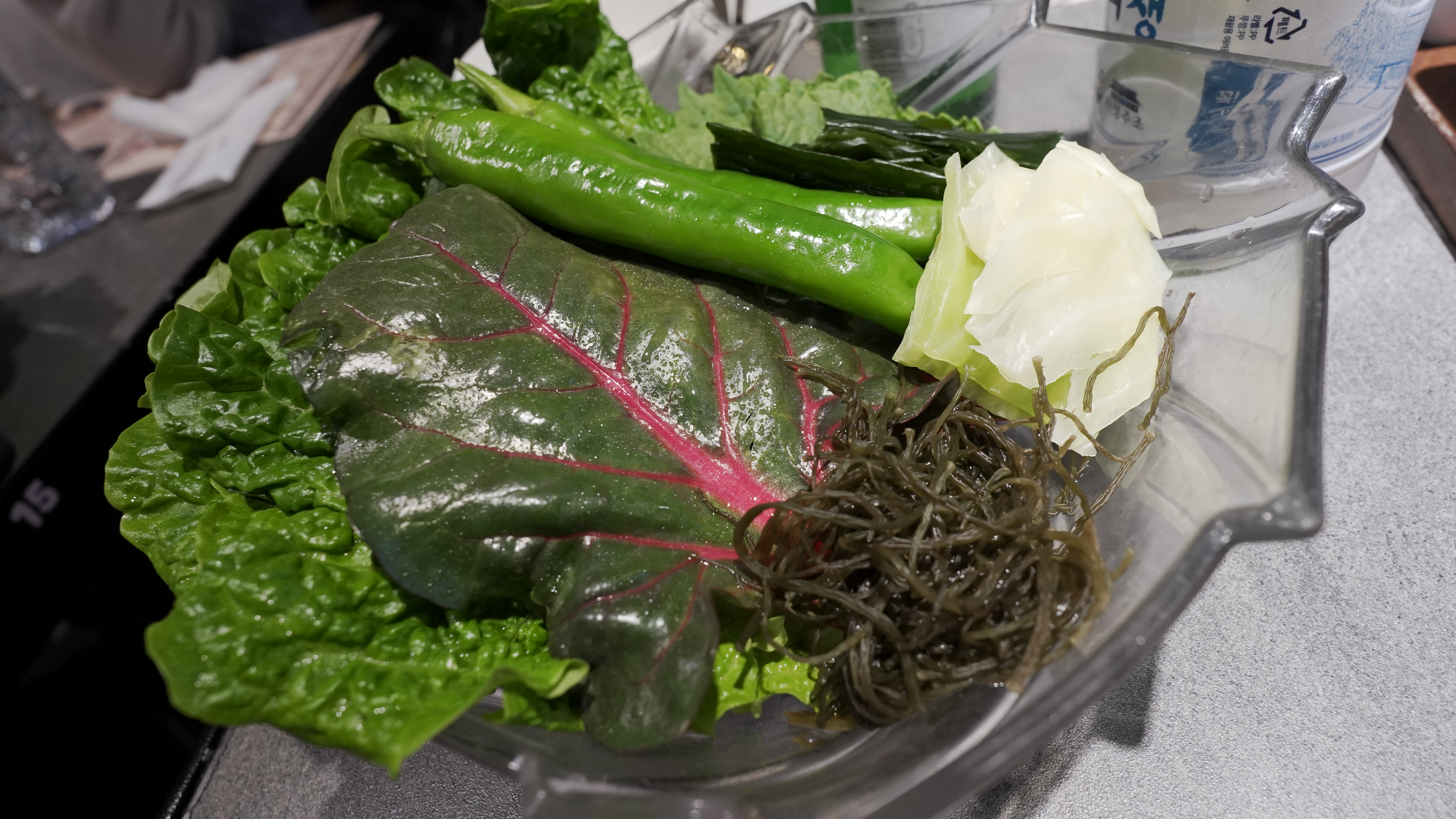 렌즈가 광각이지만 초점거리가 매우 짧아 거의 접사수준으로 사진을 찍을 수 있어 매우 좋았던 것 같습니다. 음식점의 조명탓인지 야채, 고기 등이 모두 신선한 듯한 느낌을 주었습니다. (고가이니 재료가 좋았겠죠!)