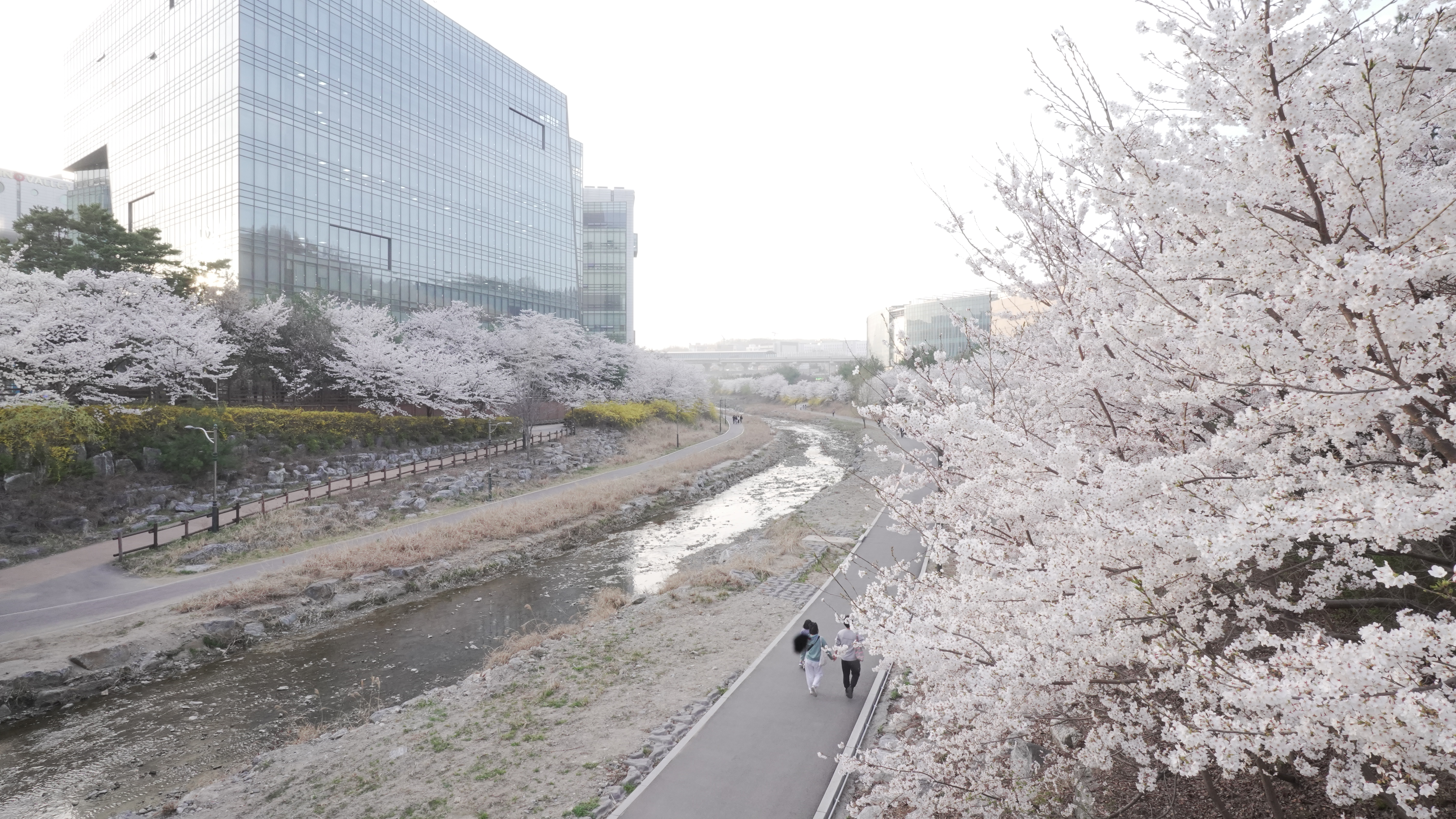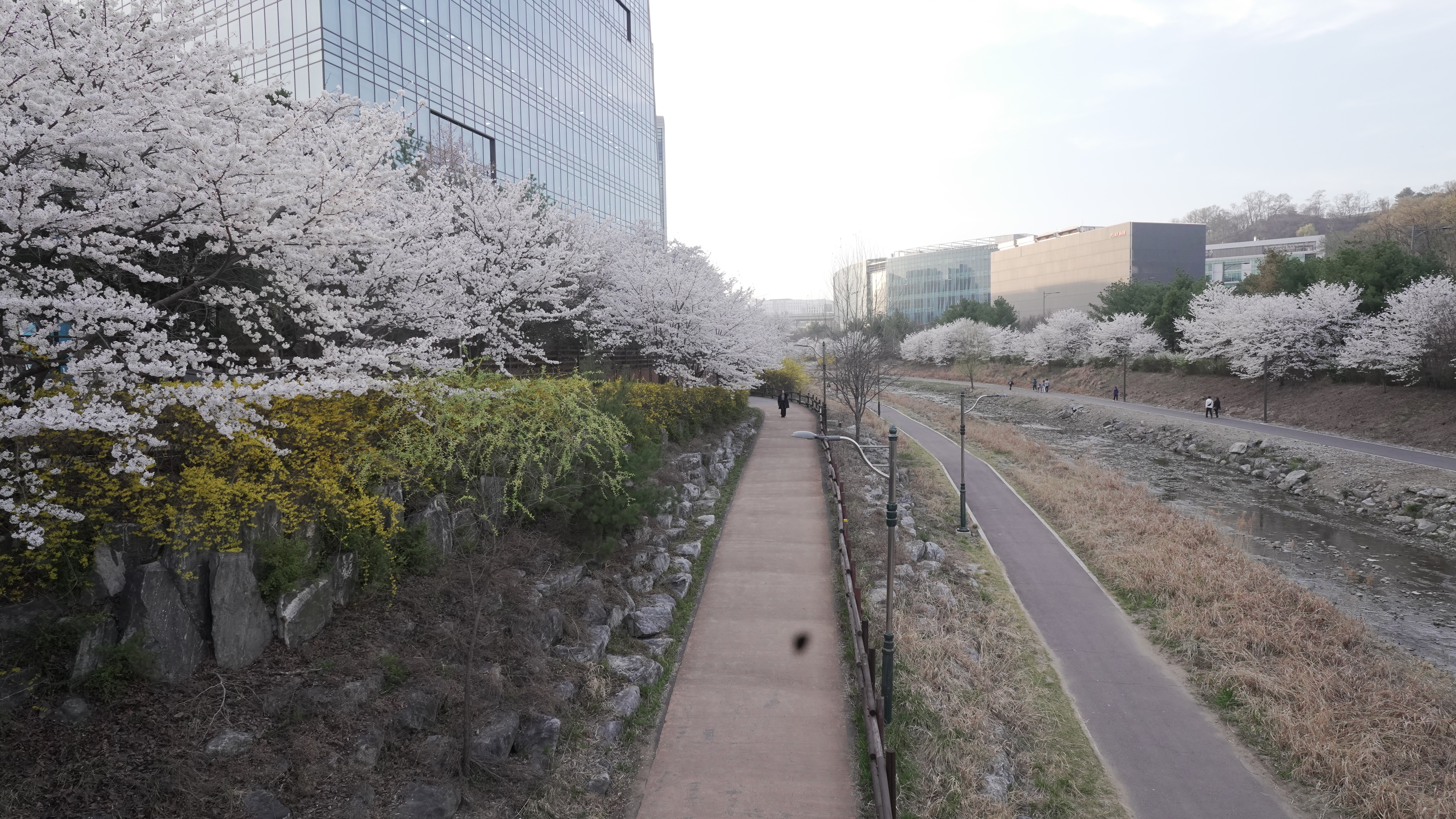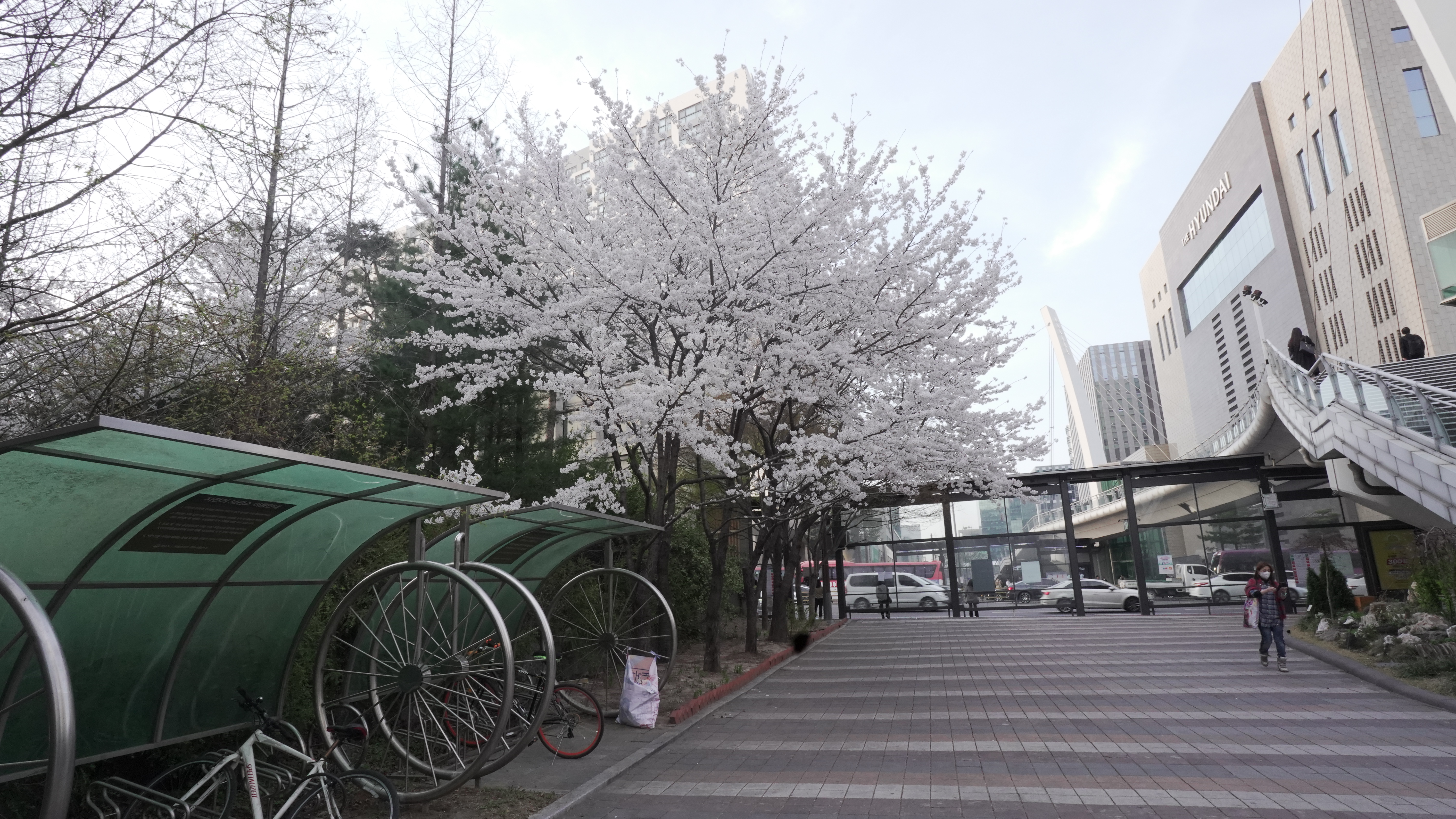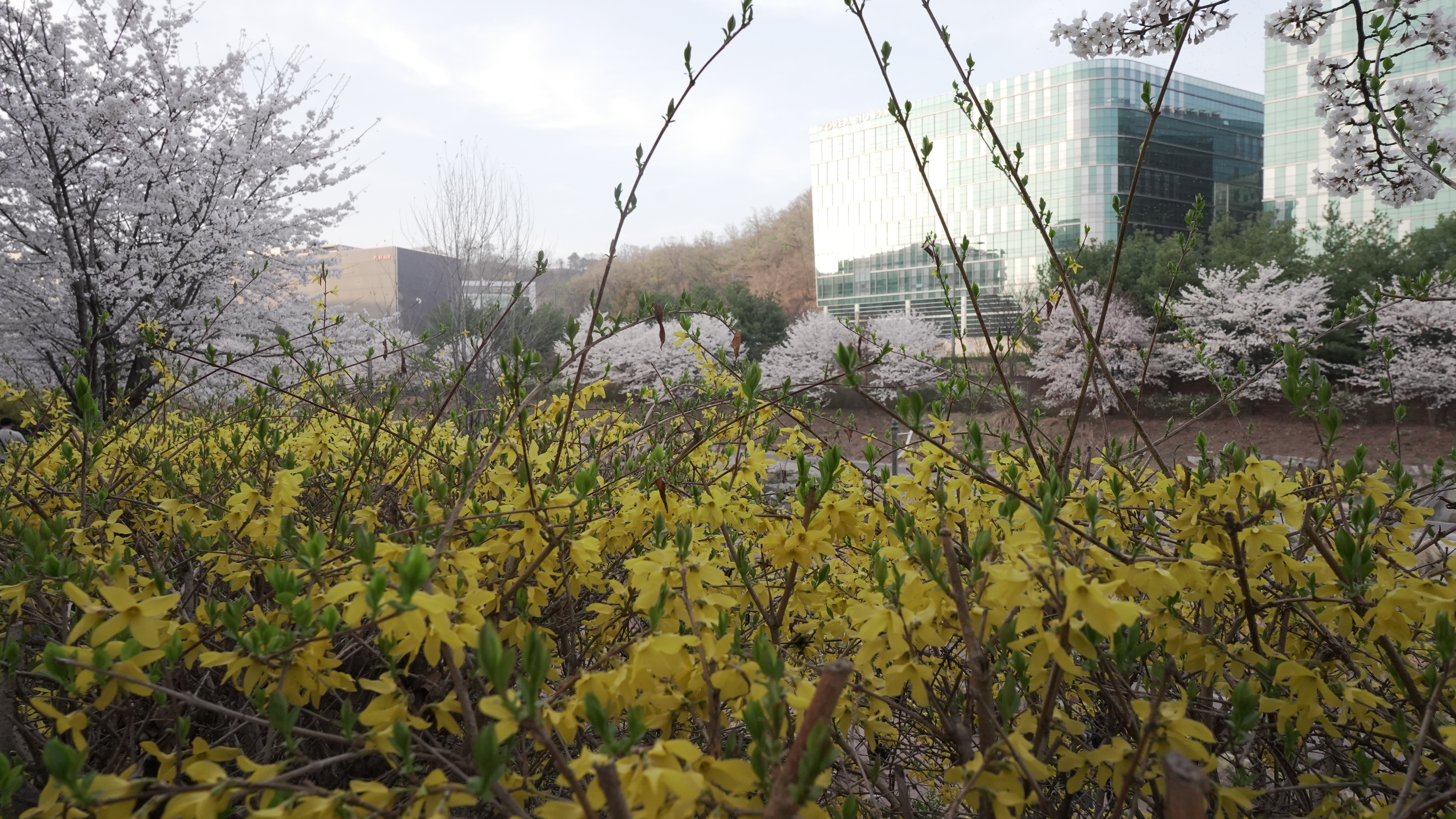 회사로 돌아오는 길, 판교에는 온통 벚꽃과 개나리들로 가득했습니다. 판교에는 벚꽃이 이제 초절정의 봉우리를 열고 있는 것 같았습니다. 현대백화점 앞 버스에 내려 회사로 가기 위한 버스를 갈아타는 길, 아파트 단지 안을 걸어가는데 온통 벚꼿으로 뒤덮여 있다고 해도 과언이 아니었습니다.
