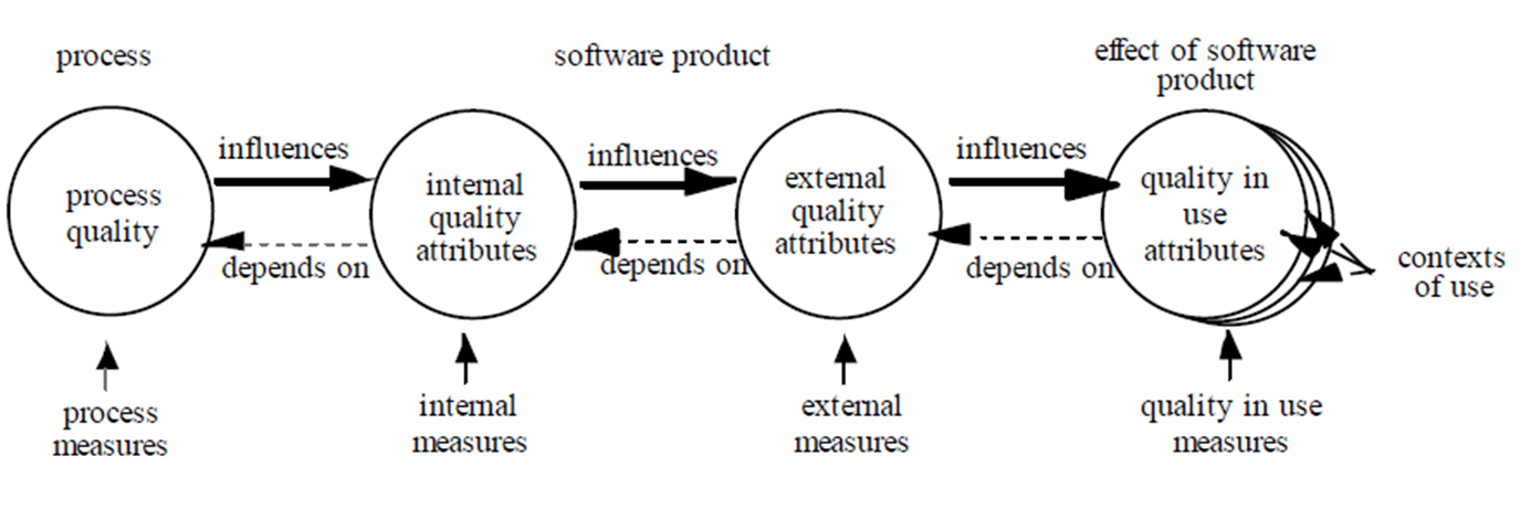 특히 제품 자체의 품질보다 우선하는 것이 제품을 만드는 프로세스 관점에서 Process Quality입니다. Product Quality는 결국 Process Quality에 영향을 받습니다. Product Quality는 Internal Quality, Extermal Quality, Quality in Use Quality로 구분될 수 있습니다.