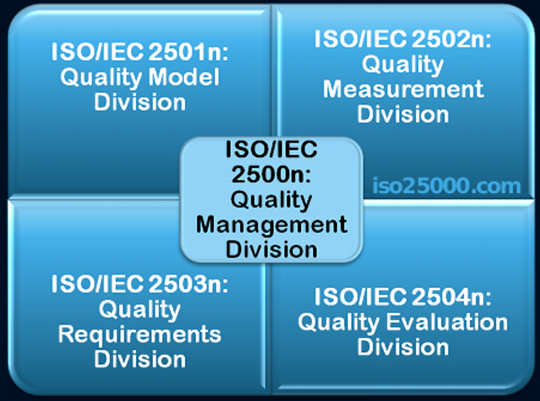 비기능적 요구사항은 품질 요구사항과 제약사항이라고 하였습니다. 따라서 비기능적 요구사항을 식별하기 위한 참조모델로서 시스템과/소프트웨어의 품질과 관련한 표준인 ISO/IEC 25000 시리즈의 품질모델을 기반으로 비기능 요구사항을 식별할 수 있습니다. ISO/IEC 25000 시리즈를 SQUARE(System and Software Quality Requirements and Evaluation)라고 하며, 크게 아래와 같이 5개의 시리즈로 구성되어 있으나 이글에서는 Quality Model Division에서 제시하는 품질모델에 대해 설명하고자 합니다. (AI를 위한 시스템을 위해 ISO/IEC 25059에서 25010에 대한 확장판을 정의하고 있습니다.)