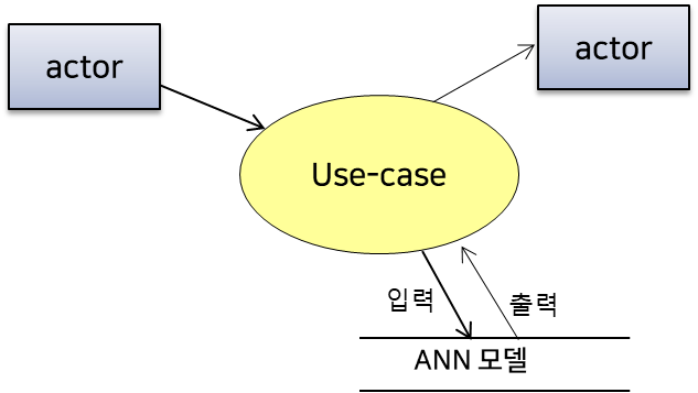 유스케이스 모델을 통해 문제를 정의하였으며, 이를 기반으로 유스케이스의 전부 또는 일부를 ANN으로 구현하는 것을 고려하여 시스템의 분석 모델을 수정 또는 확장하여 모델링할 수 있습니다. 특히 딥러닝 모델과 학습을 위한 데이터는 데이터모델링을 통해 상세히 정의할 수 있습니다.