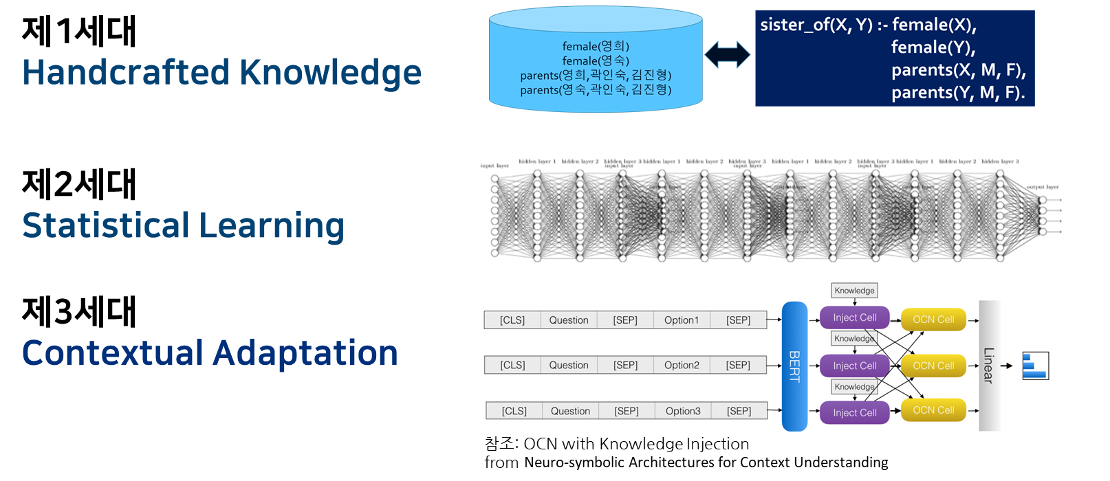 지금의 2세대를 신경망모델을 기반으로 한 statistical learning의 세대로서 규정하고 블랙박스로서 설명가능하지 않은 모델을 설명가능한 모델로 발전하고, 1세대와 같은 인간 및 자연의 지식과 같은 배경지식을 포함하는 contextual adaption이 가능한 제3세대 인공지능으로 발전하는 것을 목표로 하고 있습니다.
