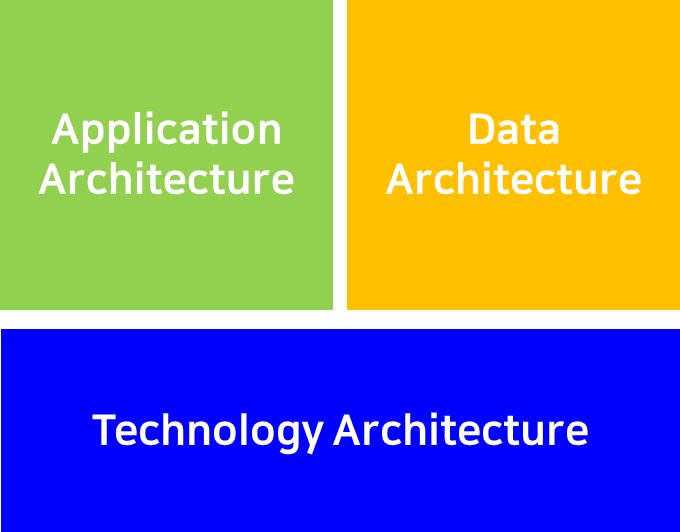 소프트웨어 시스템을 설계하는 입장에서는 System Architecture를 Layered Architecture 개념으로 Technology, Application, Data Architecture로 구분하여 설계합니다. Technology Architecture는 Solution Architecture라고 하며, 이는 Application Software이하의 미들웨어와 하드웨어 구조를 의미합니다.