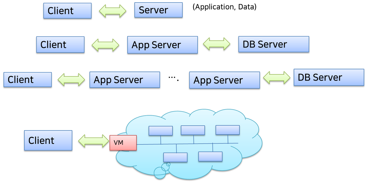 컴퓨터시스템의 아키텍처를 구성하는 가장 일반적인 방법은 수평적 확장(Scale-out)이 가능한 분산구조입니다. 대표적으로는 n-tier 클라이언트-서버 아키텍처, Peer-to-Peeer 아키텍처, 가상화를 기반으로 클라우드 아키텍처라고 할 수 있습니다. 특별히 클라우드를 활용하는 경우는 이러한 Technology Architecture는 크게 고민하지 않고 이미 구축된 구조를 참조하여 구현이 가능할 것입니다.