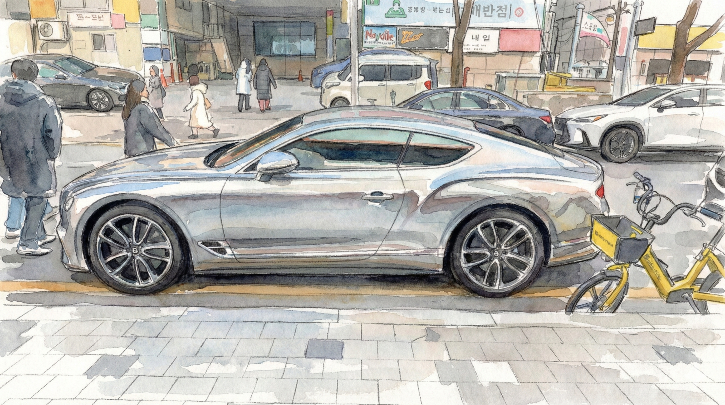 그래서 그런지 집은 없어도 차를 2대나 갖고 다녔다고 하네요. 차가 단순히 이동의 수단이라기 보다 아직도 갖고 싶은 엑세서리로 생각됩니다. 이렇게 가는 길에 멋진 벤틀리들이 여기저기 있는 것을 보면은 ....
