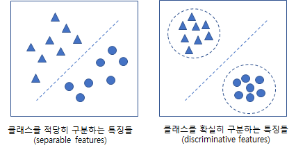 이러한 거리함수를 데이타의 성격에 따라 적용하는 것은 모델 성능에 매우 중요합니다. Deep Metric Learning이란 정해진 거리함수를 사용하는 것이라 아니라 거리함수로 정의되는 거리공간을 딥러닝을 통해 학습하는 것을 의미합니다. 다시 말해 같은 클래스에 있는 것은 거리가 짧고, 다른 클래스에 있는 것은 거리가 더욱 멀도록 학습하는 것입니다. 예들 들어 얼굴인식 분야와 같은 많은 사람의 얼굴을 인식해야 하는 경우에는 기존 분류모델에서는 거리공간의 매핑에 문제점이 존재합니다. 기존의 방법은 적당히 구분가능한 특징들을 분류하도록 학습이 되었지만 얼굴인식 분야에서는 구분이 확실이 되는 특징들이 구분이 가능한 공간에 매핑이 되도록 구분되어야 합니다. 즉 다른 사람의 얼굴특징들과는 거리가 멀고 같은 사람의 특징들은 거리가 가깝도록 엠베딩공간이 형성되어야 합니다.