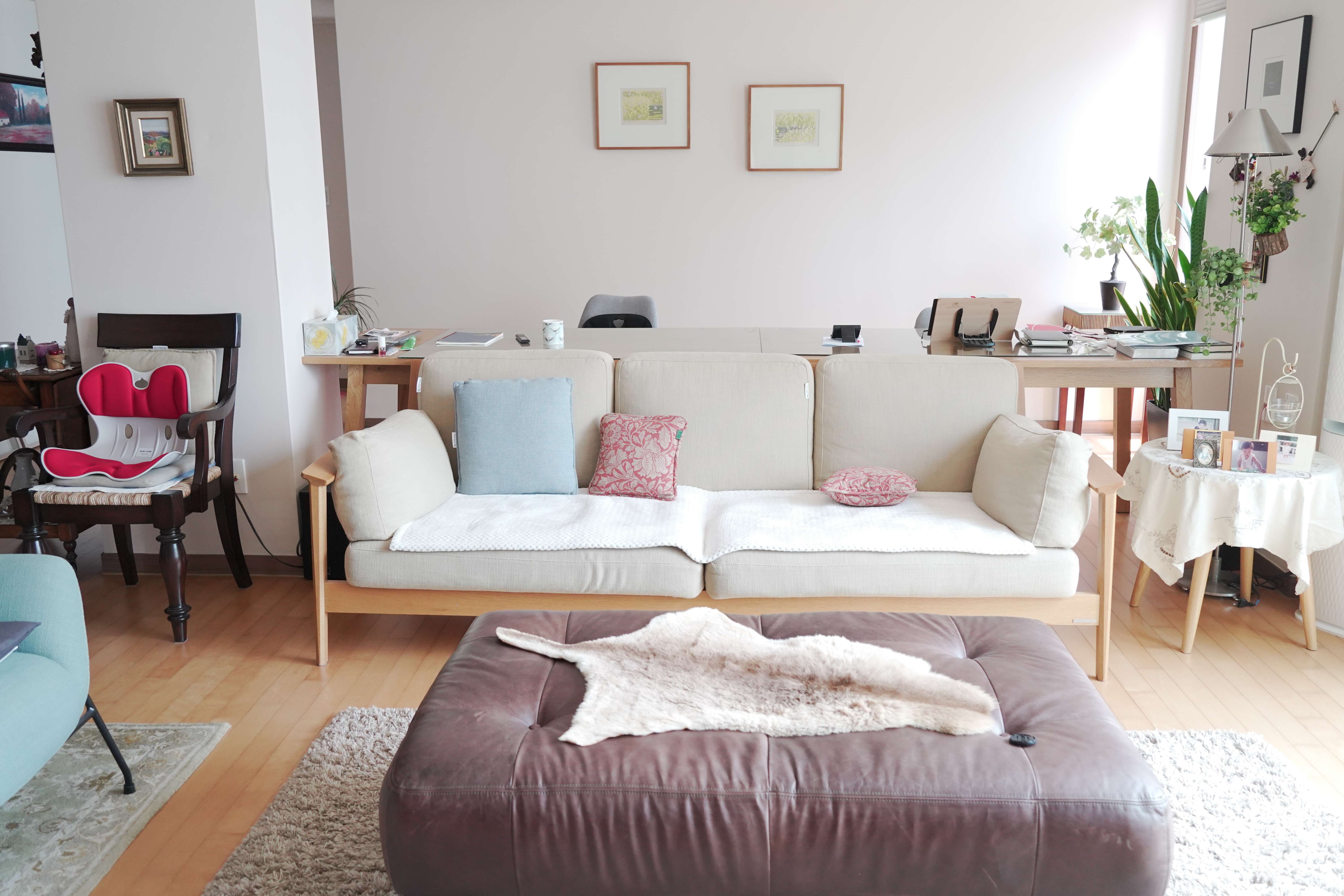 소파보다 책상을 좋아해서 각자 하나씩 테이블을 마련하고 소파는 그냥 장식 처럼 있는 놈인데, 소파가 집안 분위기를 확 살려주는 놈입니다. 아내가 중고로 구매했다고 하는데, 처음에는 가죽으로 된 소파가 좋다고 생각했는데, 지금은 이 소파가 예술 작품처럼 너무 멋있습니다.